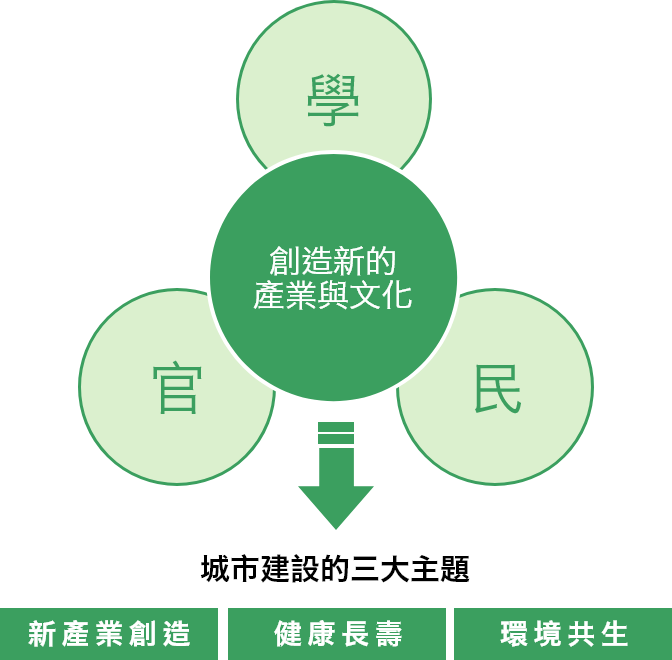 培育成為日本新興活力成長領域的「新產業創造」、讓各個年齡層得以健康、安心生活的「健康長壽」以及處處關愛保護地球的「環境共生」。